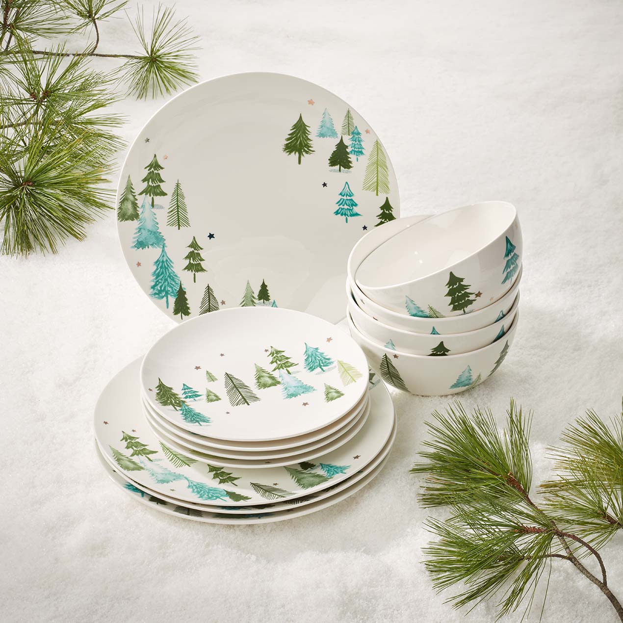 Balsam Lane is full of wintry charm, perfect for entertaining during this holiday season and beyond. Magical pine trees and gold star accents decorate this gorgeous collection crafted of durable porcelain. It is microwave and dishwasher safe, which makes it ideal for everyday use.