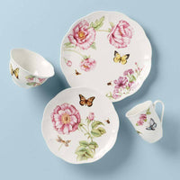 Delightful and contemporary, the Butterfly Meadow Bloom collection features an exquisite nature motif of pink flowers and colorful, vibrant butterflies. This versatile and durable ceramic porcelain dinnerware collection is both dishwasher and microwave safe, making it perfect for everyday use.
