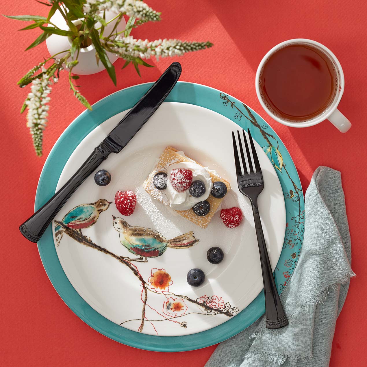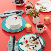 A little bird told us you were looking for something fresh and fun to bring to the table. Something that enlivens special gatherings and quiet moments. Something that sings! Chirp dinnerware brings a cheerful note to every meal with its watercolor design of songbirds, blooms, and branches on pristine white porcelain. Pops of teal add to the lighthearted appeal. And you’ll love that each piece meets your daily needs, being microwave and dishwasher safe.