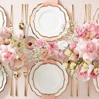 Featuring gold accents and a scalloped edge, Contempo Luxe is a versatile and unique option for decorating your table. Our collection comes in various colorways, which makes it easy for you to mix and match. This pattern is made of bone china and it is dishwasher and microwave safe, making it ideal for everyday use.