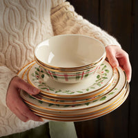 Bring a Christmas classic to the table with our best-selling Holiday collection. Crafted of ivory porcelain with 24-karat gold accents, this 1974 favorite makes a timeless seasonal statement with its iconic holly and berry motif in festive reds and greens. And this will make you merry—the dinnerware is dishwasher safe! Coordinating patterns like Holiday Plaid mean you can mix, match, and make it yours. And with table linens, kitchen accessories, décor, ornaments, and more all featuring the long-loved pattern, you can spread Holiday cheer throughout your home.