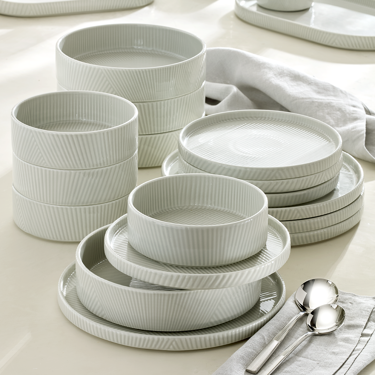 An intriguing take on the modular dinnerware trend, Modulus inspires serenity with satisfying stackability and Zen garden-inspired texture. Unconventional curves prove remarkably functional in use and storage. Nature-inspired colorways invoke a sense of purity while enhancing calmness in the home space. Dishwasher- and microwave-safe glazed porcelain.
