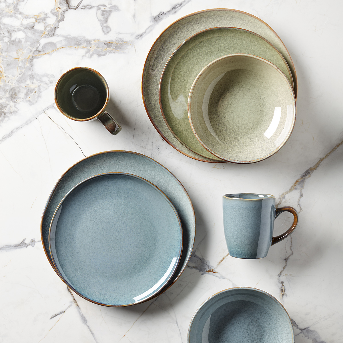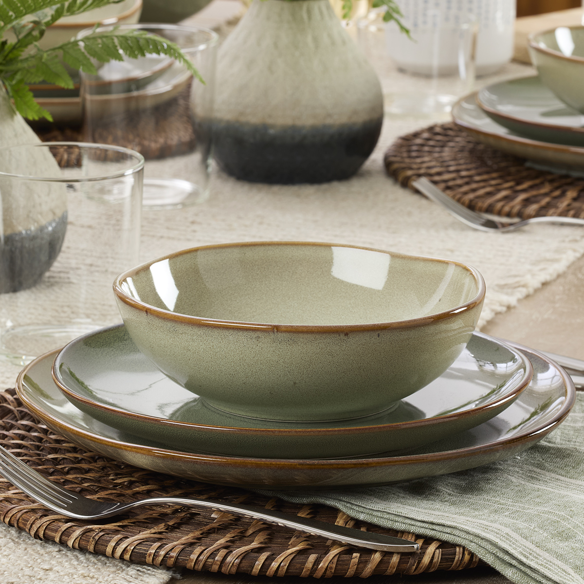 Natural beauty and down-to-earth design come together in dinnerware made for every day. Organic Shades offers a spectrum of nature-inspired colors to complement every home and every meal. Dishwasher- and microwave-safe stoneware.