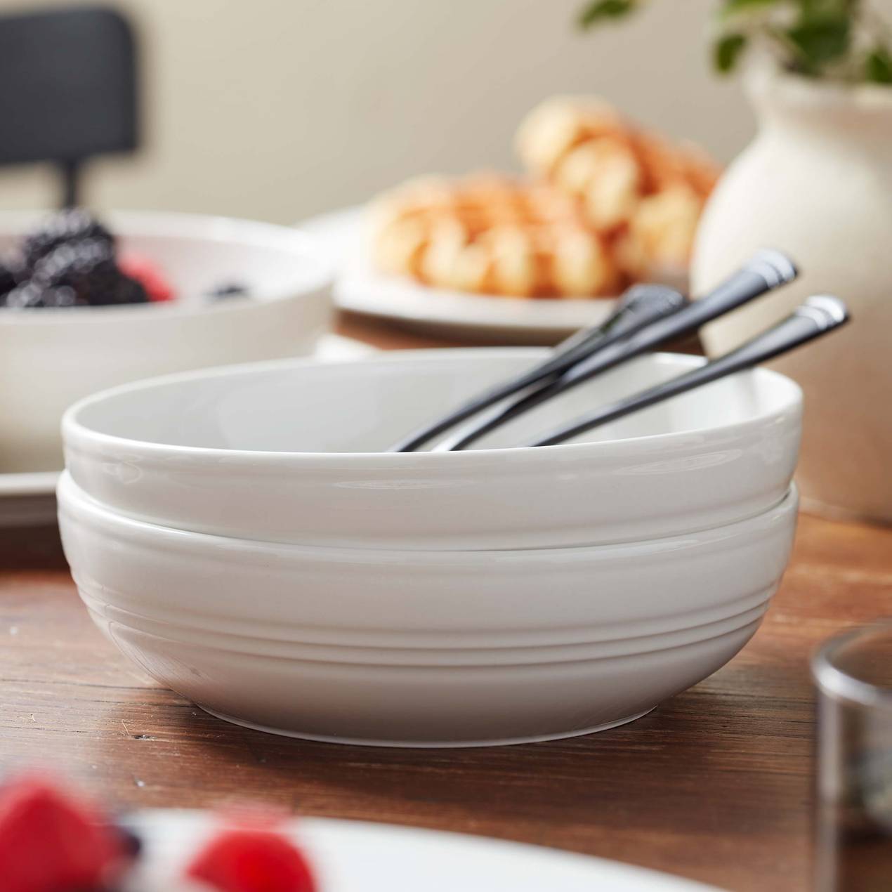 This staple white collection elevates the corrugated rings of a tin can’s emblematic pattern, creating a chic and simple design for your table. Made of porcelain, the dishes and dinnerware sets in this collection is both dishwasher safe and microwave safe, making it perfect for everyday use.