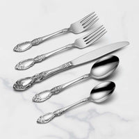 Abandon understatement and celebrate your inner romantic. Wordsworth flatware rebels against “less is more” in favor of intricacy, detail, and elevated beauty. Flowers in full bloom climb every handle; its high-end finish shines in any light.