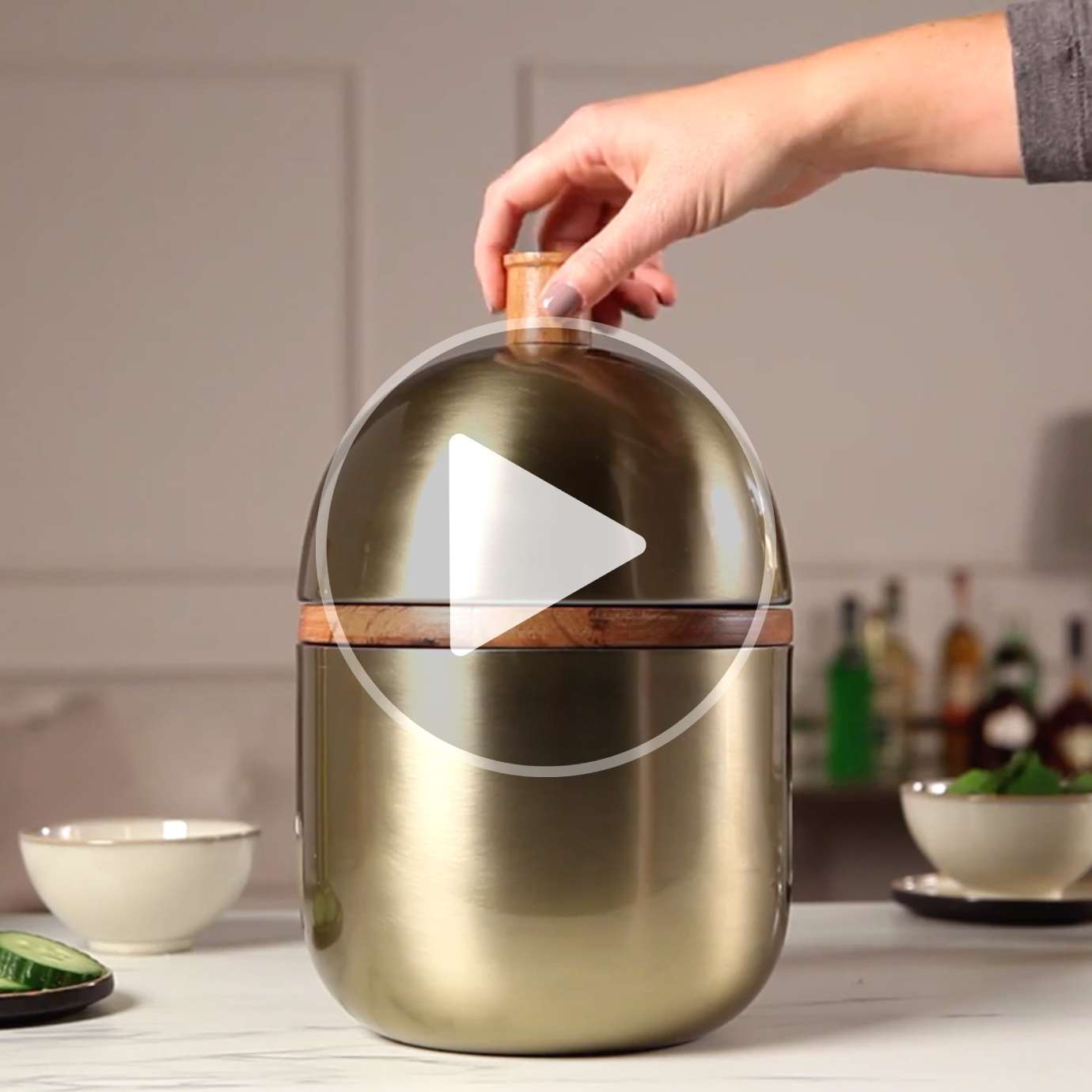 Your key to a better bar cart. Our new Bar Tool Set has everything you need in one space-saving statement. Lift the lid to find an ice scoop, jigger, muddler and bottle opener at the ready. The added bonus? Lift out the tool stand and you've got your ice bucket! Whether your drink is shaken, stirred or on the rocks, Cocktail Party has you covered.