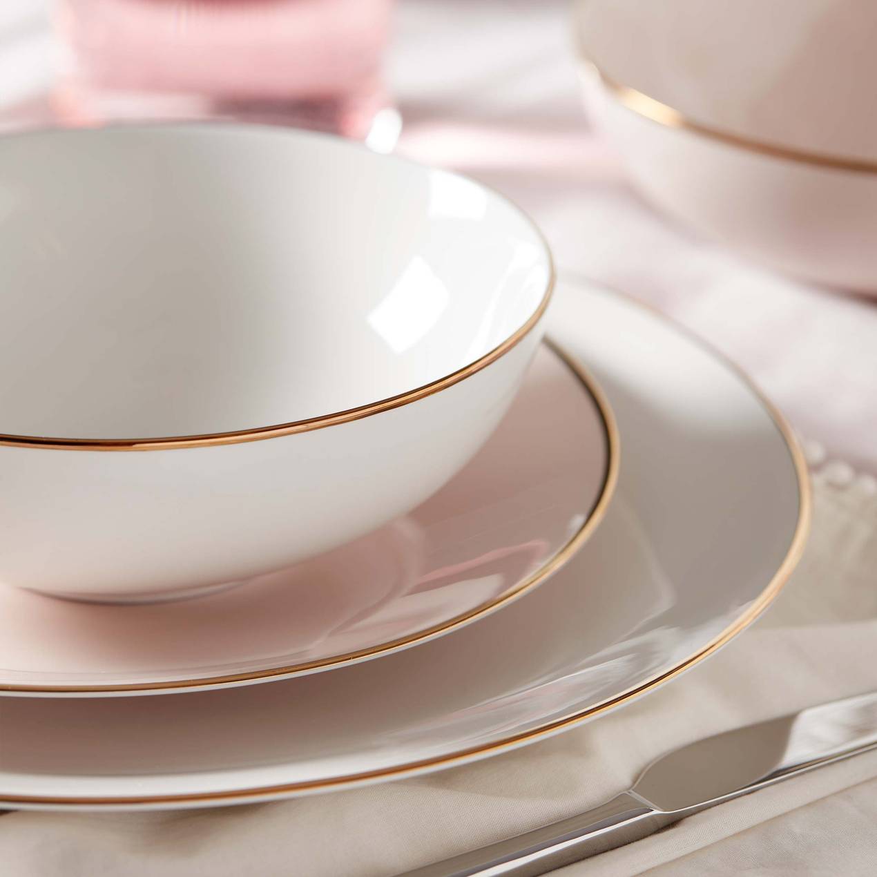 Fashion-forward with simple, clean lines, Trianna is available in trend-oriented colors that are both neutral and vibrant. Made of durable porcelain with microwave-safe gold accents, this collection is perfect for everyday use as well as special occasions and gatherings.